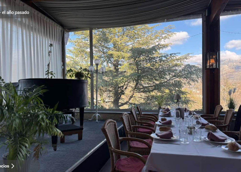Salones acogedores con chimenea, ventanales con vistas a la montaña y espacios ideales para comidas, celebraciones y encuentros especiales.